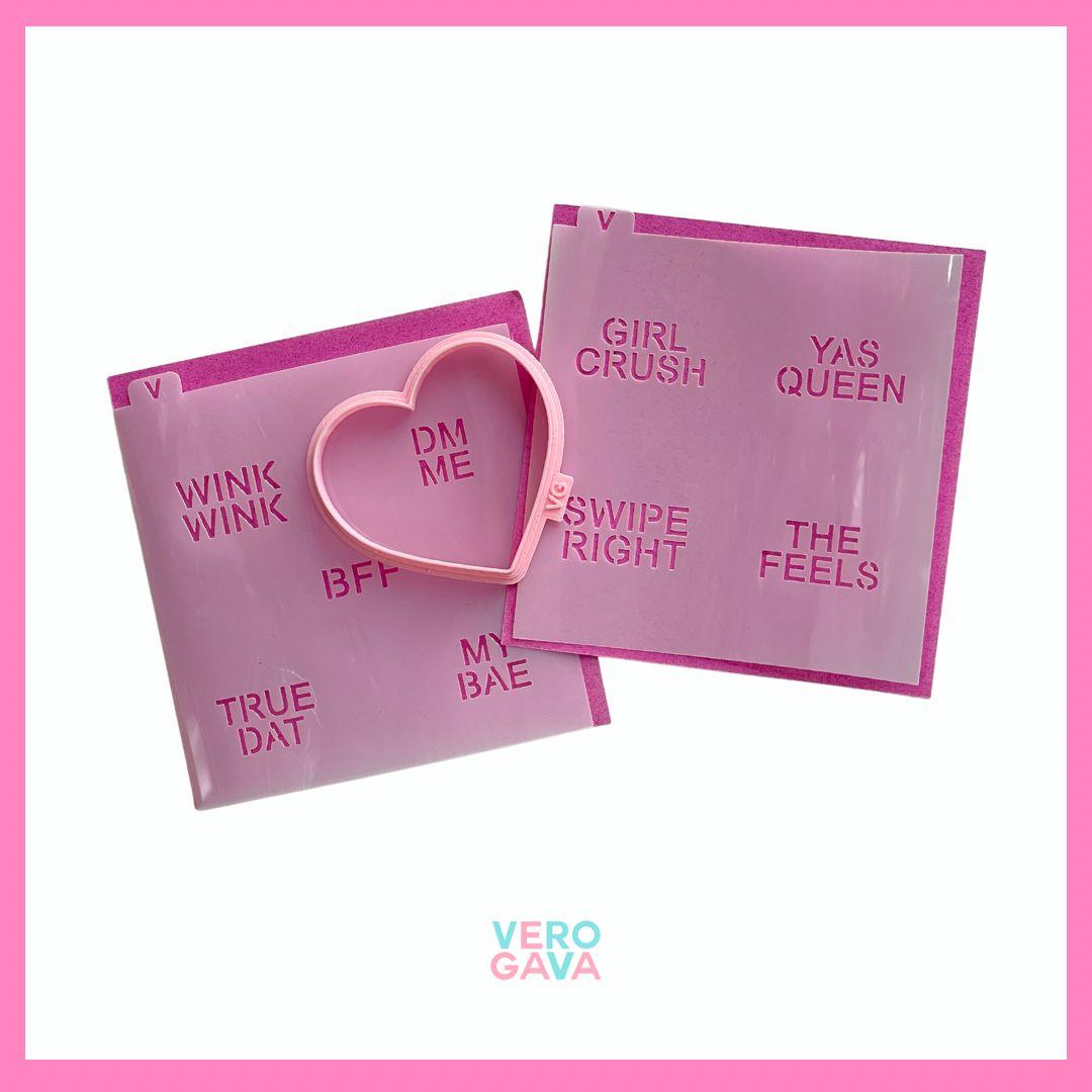 Cortador con stencil para galletas 3pzas 10cm 14x14 frases